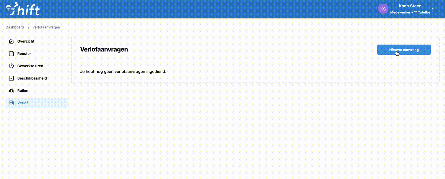 Verlof aanvragen via de MijnShift-website